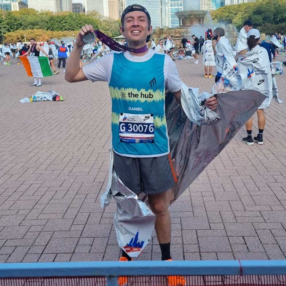 Llevo más de 12 años corriendo, siempre con objetivos y entrenando sólo, pero sin éxito. En 2023 conocí a Camilo, quien me guió con su conocimiento y apoyo. Gracias a su enfoque, no sólo disfruto más las carreras, sino que en 2024 corrí la maratón de Chicago en 3:27, ¡algo impensable!